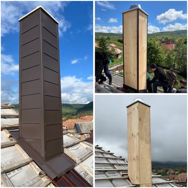 Kémények bádogos munkái – Kéményfedések, bádogos részletek precíz kivitelezése a hosszú élettartam érdekében.